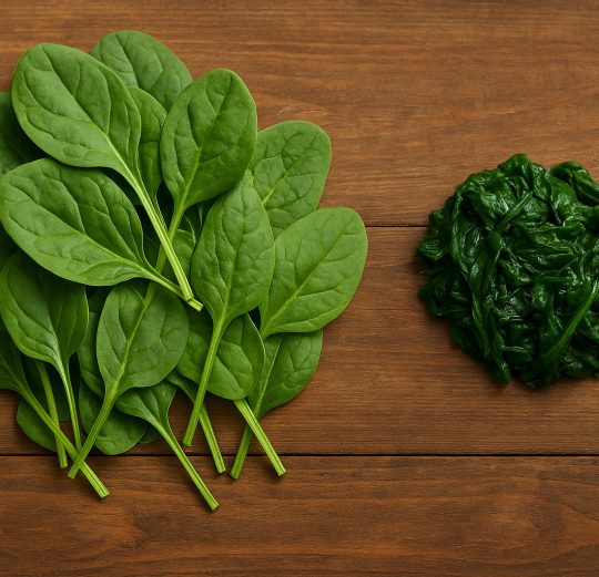 Cuando cocinamos las espinacas (al vapor, salteadas o hervidas brevemente), su volumen disminuye y se concentran algunos nutrientes, como el hierro, el calcio y los carotenoides (antioxidantes que protegen las células).